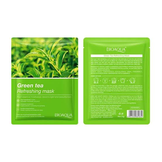 Bioaqua Green Tea Refreshing Facial Mask is a single-use, ultra-thin sheet mask infused with green tea extract—designed to hydrate, refresh, soothe, and brighten the skin. Key ingredients include green tea extract, glycerin, allantoin, and hyaluronic acid, which help with moisture retention, calming inflammation, and boosting skin’s radiance